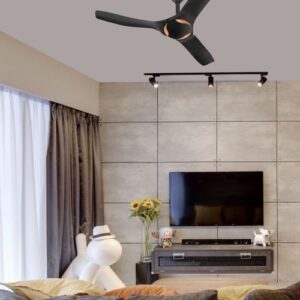 Breezelux 48″ Modern Luxury Decorative Silent Underlight Remote Ceiling Mount Fan (Black) BL-2915