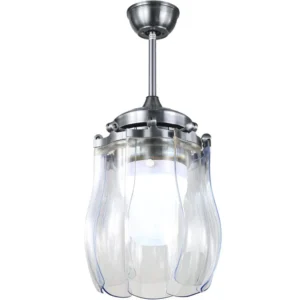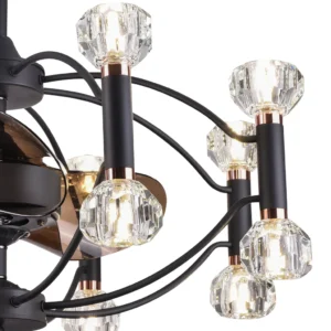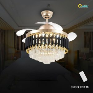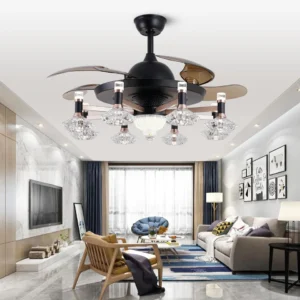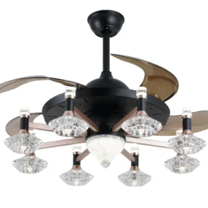 Qulik 48″ Crystal Chandelier Retractable Invisible Blade Silent 3 Color Change LED Remote Ceiling Fan (Golden)