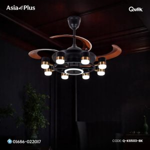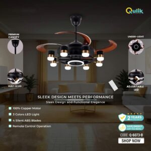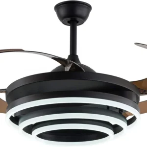 Qulik 48″ Modern Chandelier Retractable Invisible Blade Silent 3 Color Change LED Remote Ceiling Fan (Black)