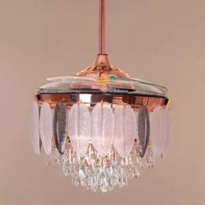 Breezelux 48″ Crystal Retractable Luxury Decorative Silent Underlight Invisible Blade Chandelier With Remote Ceiling Fan (Rose Gold) BL-3023