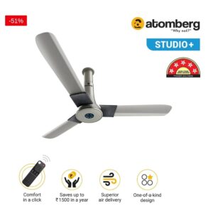 icator Light Ceiling Fan with Remote Control ( Earth Brown) AT-129 -38% Sold out Roll over or click image to zoom in Atomberg Studio Smart+ 48″ 28 Watt BLDC motor Energy Saving Anti-Dust Speed Indicator Light Ceiling Fan with Remote Control ( Earth Brown)