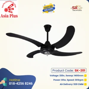 SK Iris 56″ Inverter With Remote Ceiling Fan Black Wooden SK-208