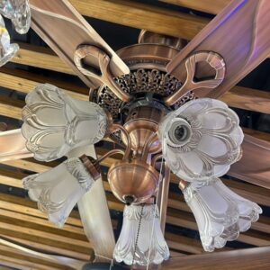 Qulik Luxoria UL 52″ -Glass Flower Lampshade Copper Motor Remote Control Under-light Ceiling Fan Fan