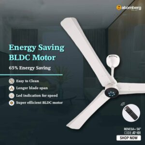 Atomberg Renesa+ 56 ” 35W BLDC motor Energy Saving Anti-Dust Speed Indicator Light Ceiling Fan with Remote Control (( white ) )
