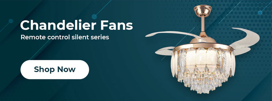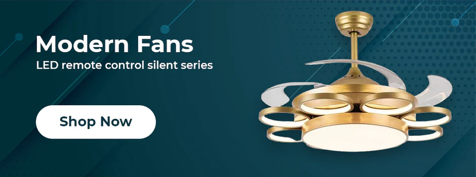 Qulik 48 Inch Modern Chandelier Retractable Invisible Blade Silent 3 Color Change LED Remote Ceiling Fan (Golden)