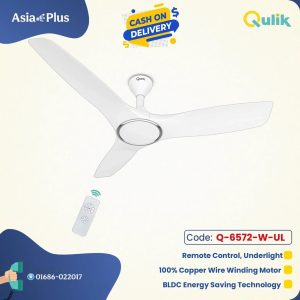 Qulik Alpha Edge 4B 53″- Decorative Energy Saving BLDC Remote Control Underlight Ceiling Fan (Parle White)
