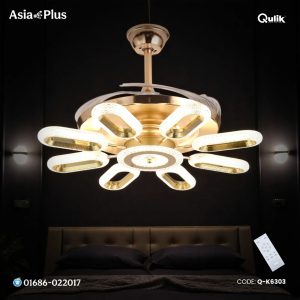 Qulik 48″ Modern Chandelier Retractable Invisible Blade Silent 3 Color Change LED Remote Ceiling Fan (Golden)