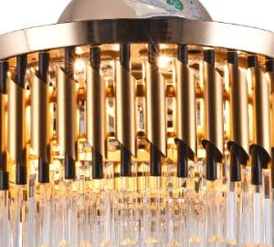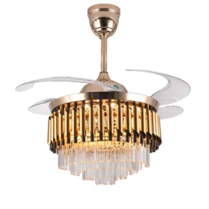 Yamada 42’’ Retractable Crystal Silent 3 Light Change LED Chandelier With Remote Invisible Blade Golden Crystal Y-514