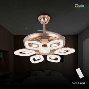 Qulik 48″ Crystal Chandelier Retractable Invisible Blade MP3 Silent 3 Color Change LED Remote Ceiling Fan (Golden) Q-8299
