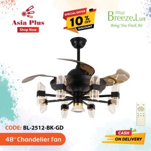 Breezelux 48″ Modern Chandelier Retractable Invisible Blade Silent 3 Color Change LED Remote Ceiling Fan (Black) Q-6061-B No reviews