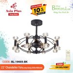 Breezelux 22″ Elegant Modern Retractable Luxury Decorative Silent Underlight Invisible Blade Chandelier with Remote Ceiling Fan (Black) BL-19005
