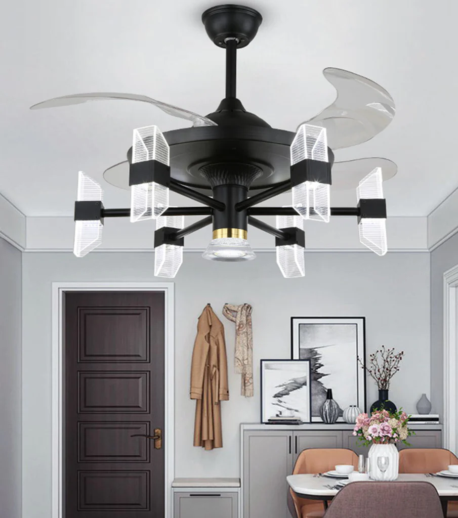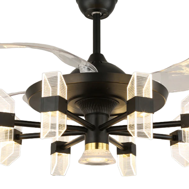 Qulik M24 48" Mordern Chandelier Retractable Invisible Blade Silent 3 Color Change LED Remote Ceiling Fan (Black) Q-6061