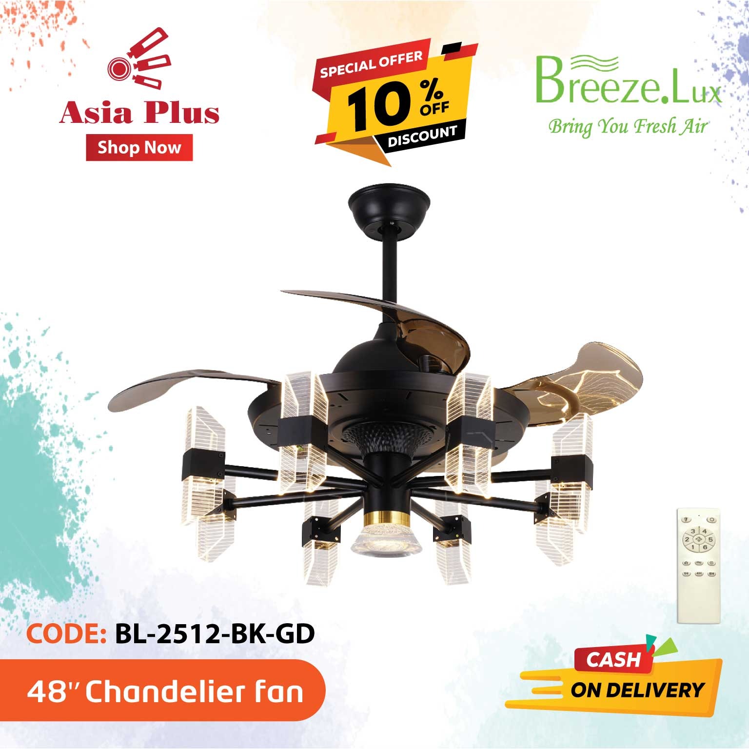 Breezelux 48 Inch Modern Chandelier Retractable Invisible Blade Silent 3 Color Change LED Remote Ceiling Fan (Black) Q-6061-D 47,000.00৳  Original price was: 47,000.00৳ .21,000.00৳ Current price is: 21,000.00৳ .