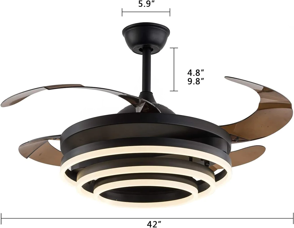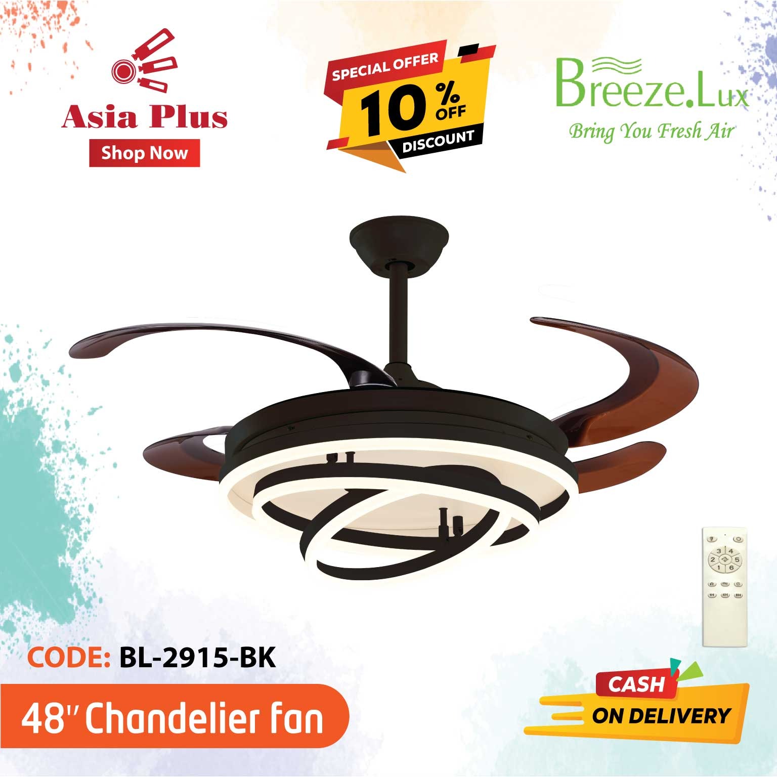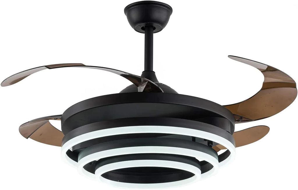 Breezelux 48″ Elegant Modern Retractable Luxury Decorative Silent Underlight Invisible Blade Chandelier With Remote Ceiling Fan (Black & Coffee) BL-2521