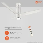 Set to redefine the way we look at a ceiling fan, the new orient aeroslim fan takes the technological genius of very silent, very powerful aeroseries fans to a whole new level with its mesmerizing looks, aerodynamic design, inverter motor, remote-controlled operation, and iota control. Orient aeroslim has everything one could ask for in a fan. It features an advanced aerodynamic profiled blade design and super-efficient inverter motor to give an impressive air delivery of 240 cmm while ensuring silent operation even at low voltages till 140v. Aeroslim has a sweep of 1200 mm and has a 100 percent rust-free blade made of high-grade glass-filled compounded abs which provides strength to the blades, thus making it bend-proof, rust-proof, and easy to clean. The fan consumes only 45-watt of power, thanks to the inverter motor. If all this was not enough, the smart fan is iota enabled too which puts comfort and control at your fingertips. The iota control gives users the freedom to manage fan speed and modes, reverse rotation, and lighting. With its one-of-a-kind slim, cylindrical design, orient aeroslim is sure to become the focal point in every setting. It has the telescopic adjustable design of the mounting which complements both traditional and modern ceilings. The seamless design and high gloss premium finish with PU paint/hydrographic finish make this fan a real eye-catcher.