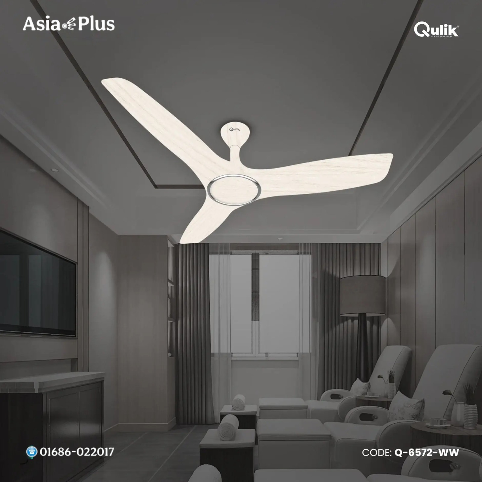 Qulik Aerovane 52″ Modern Decorative Silent ABS Blade Remote Ceiling Fan (White Wood) Q-6572-WW