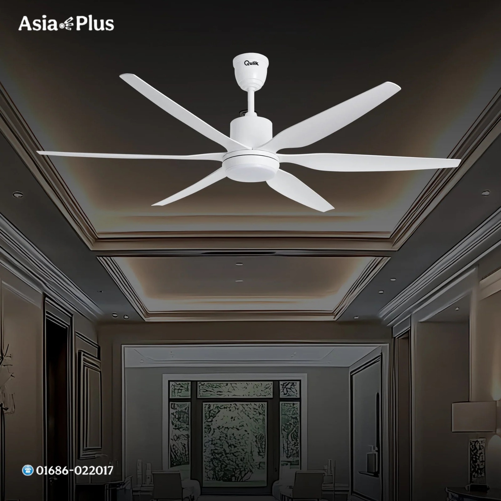 Qulik 54 Inch Modern Decorative Silent ABS Blade Under light with Remote Ceiling Fan (White) Q-6507-W